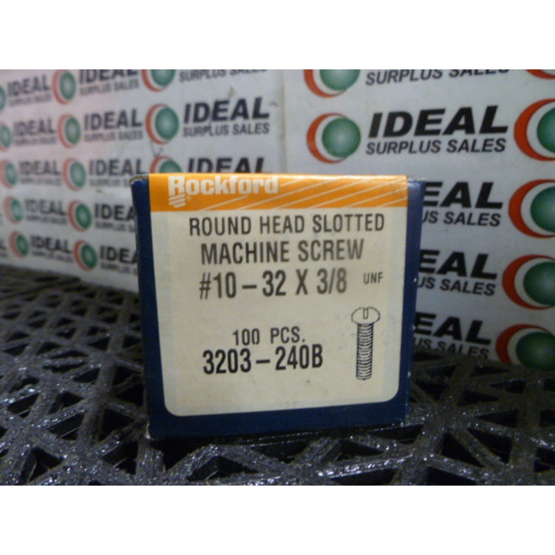 SCREW, ROCKFORD – 3203-240B, ROUND HEAD SLOTTED MACHINE SCREW 10-32X3/8 (BOX OF 100)
