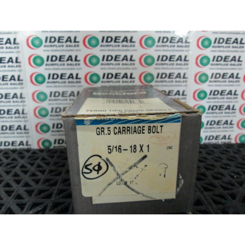 BOLT, ROCKFORD 5/16-18 X 1, GRADE 5 CARRIAGE BOLT - BOX OF 50